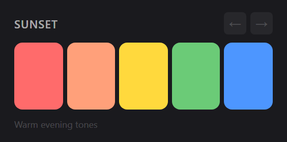 - Curated collection of harmonious 5-color palettes