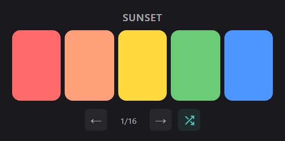 - Curated collection of harmonious 5-color palettes